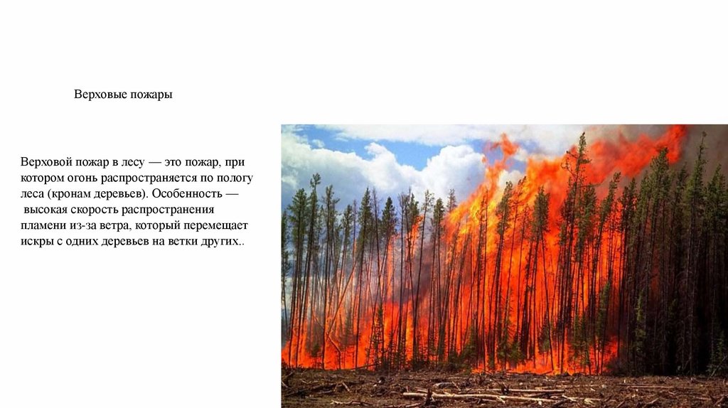 Верховые пожарыВерховой пожар в лесу — это пожар, при
