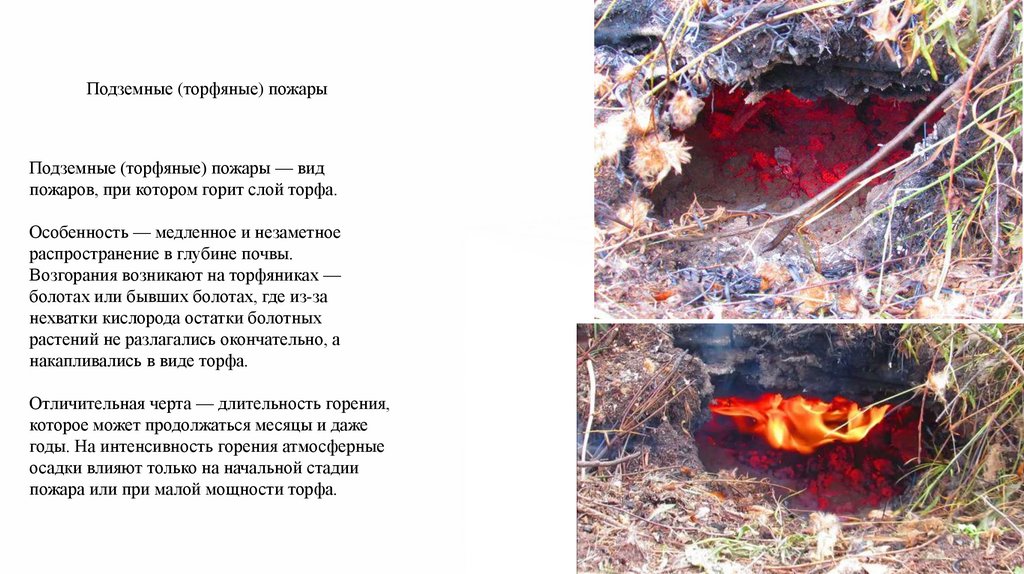 Подземные (торфяные) пожарыПодземные (торфяные) пожары — вид