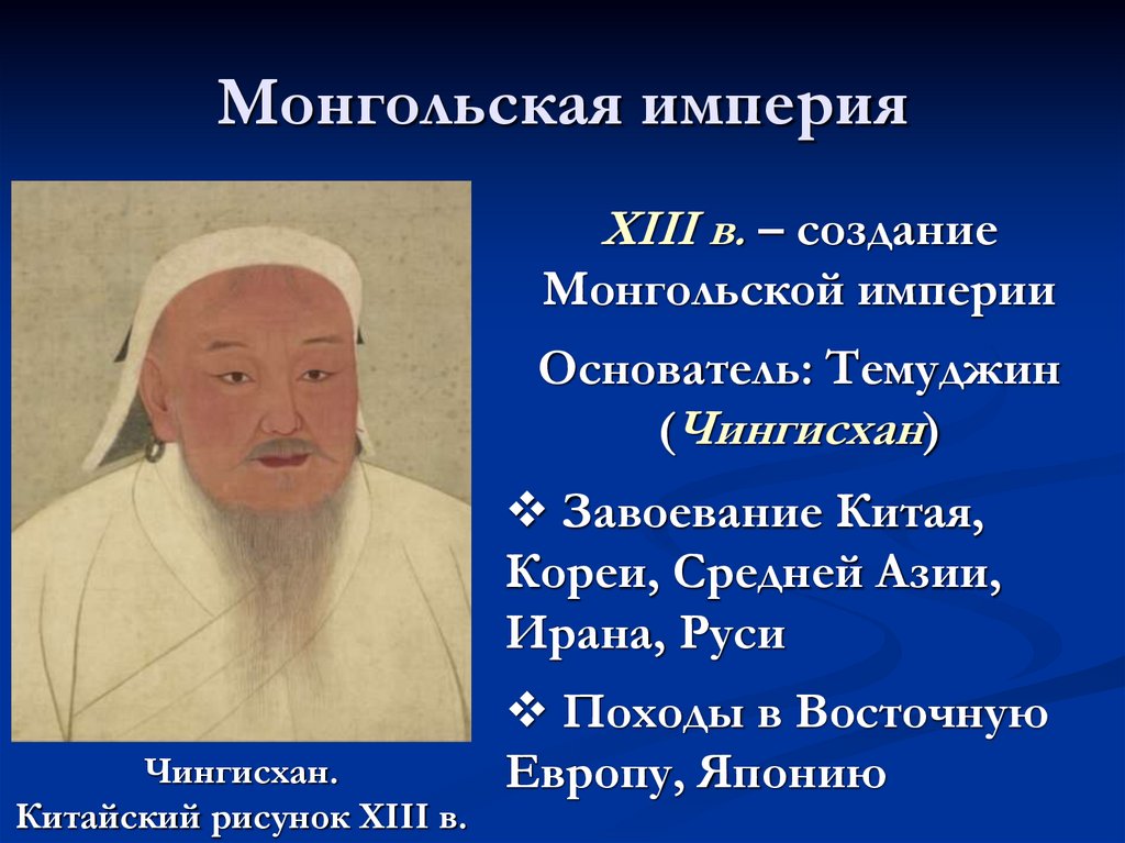 XIII в. – созданиеМонгольской империи
