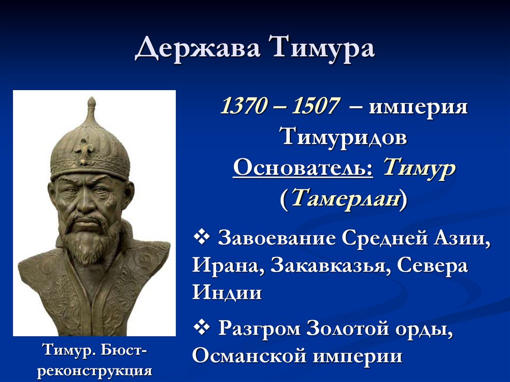 1370 – 1507 – империяТимуридов