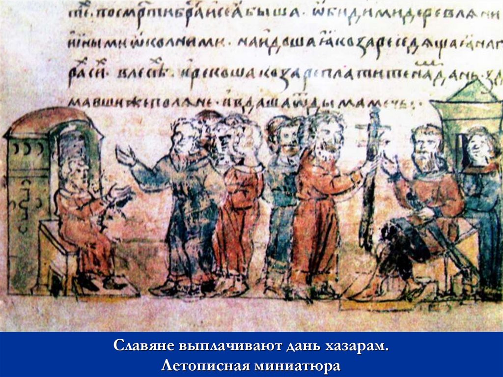 Славяне выплачивают дань хазарам.Летописная миниатюра