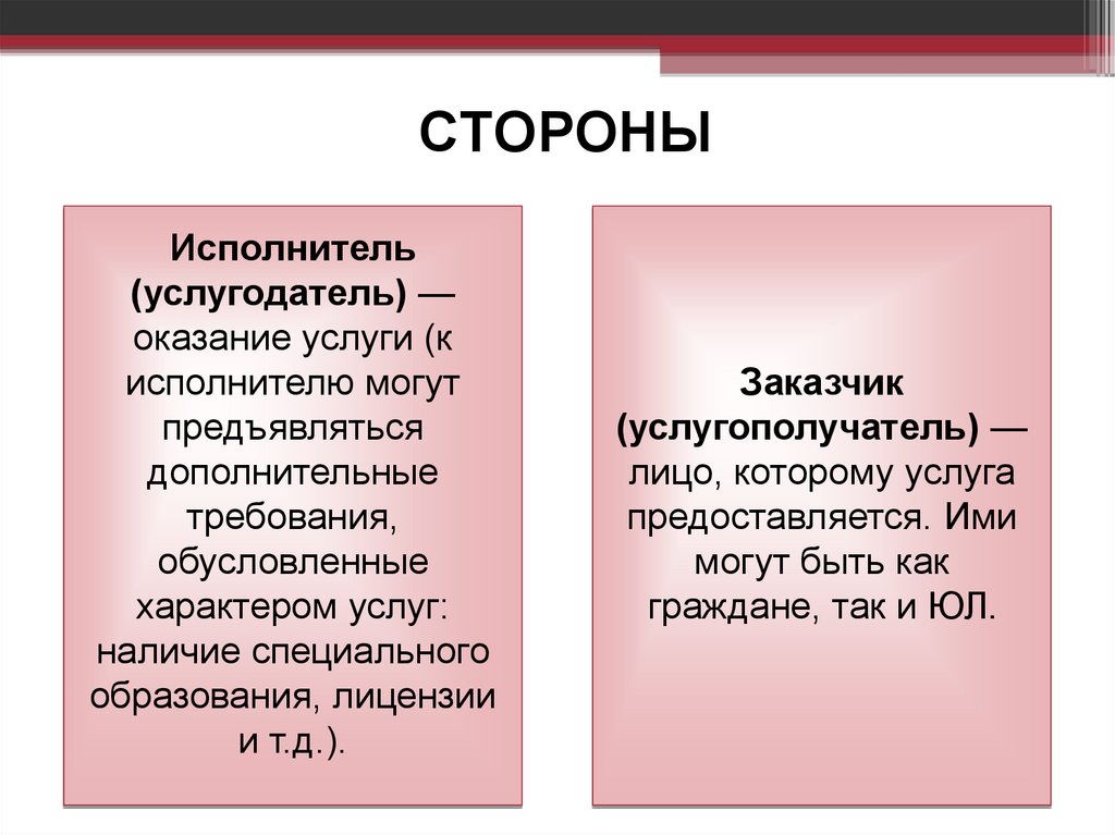 поскольку для исполнителя чаще всего оказание определённых услуг