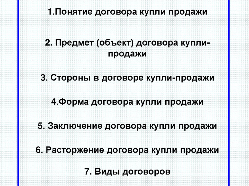 1.Понятие договора купли продажи2. Предмет (объект) договора куплипродажи