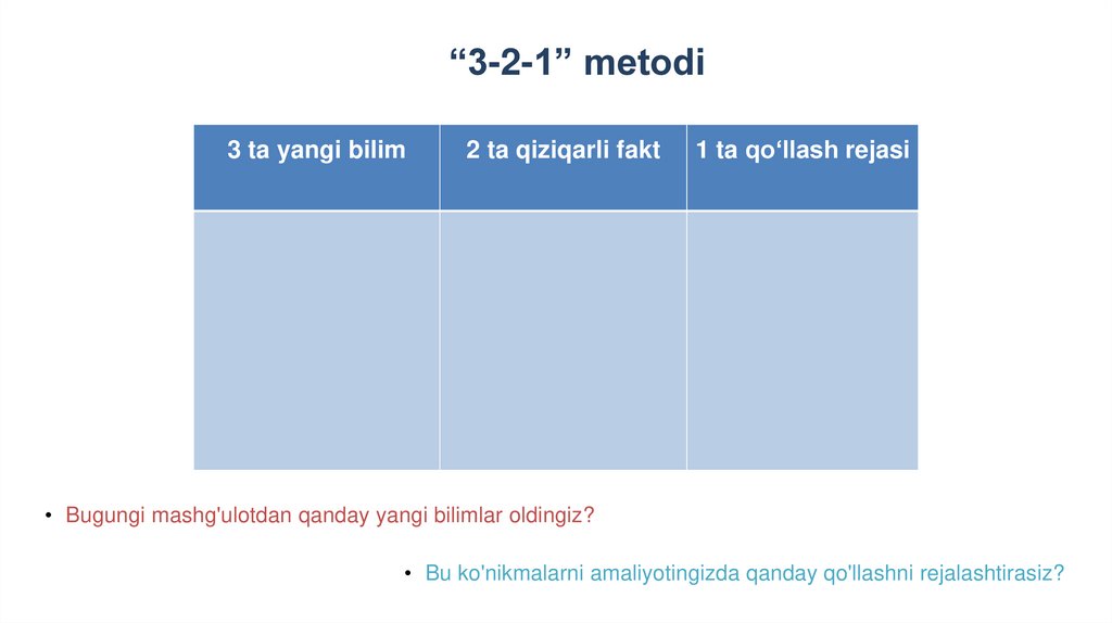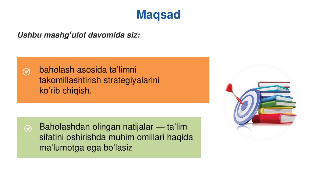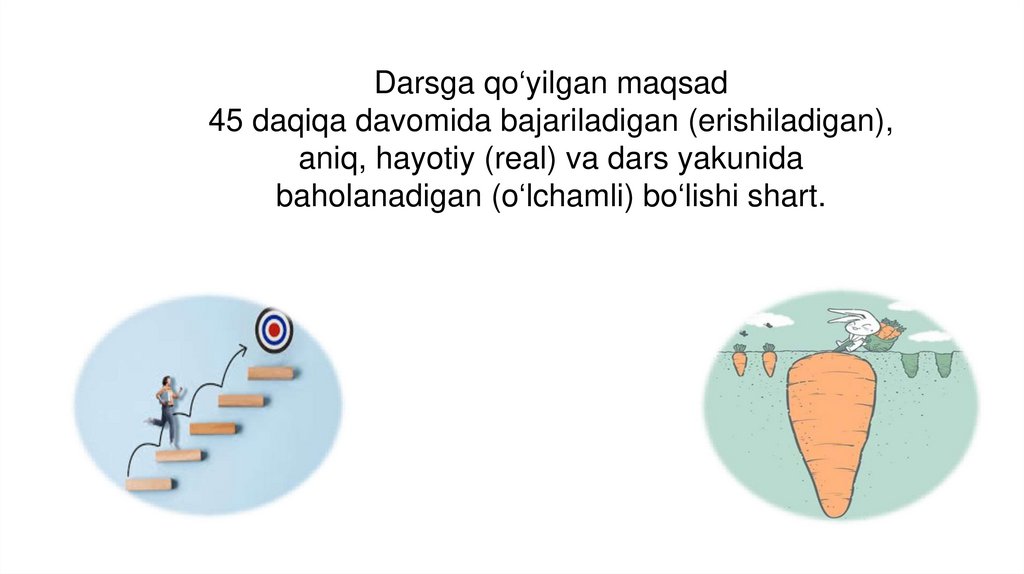 Darsga qo‘yilgan maqsad45 daqiqa davomida bajariladigan (erishiladigan),