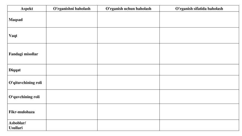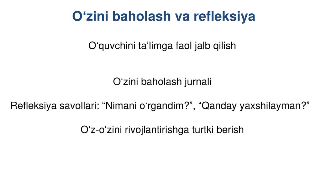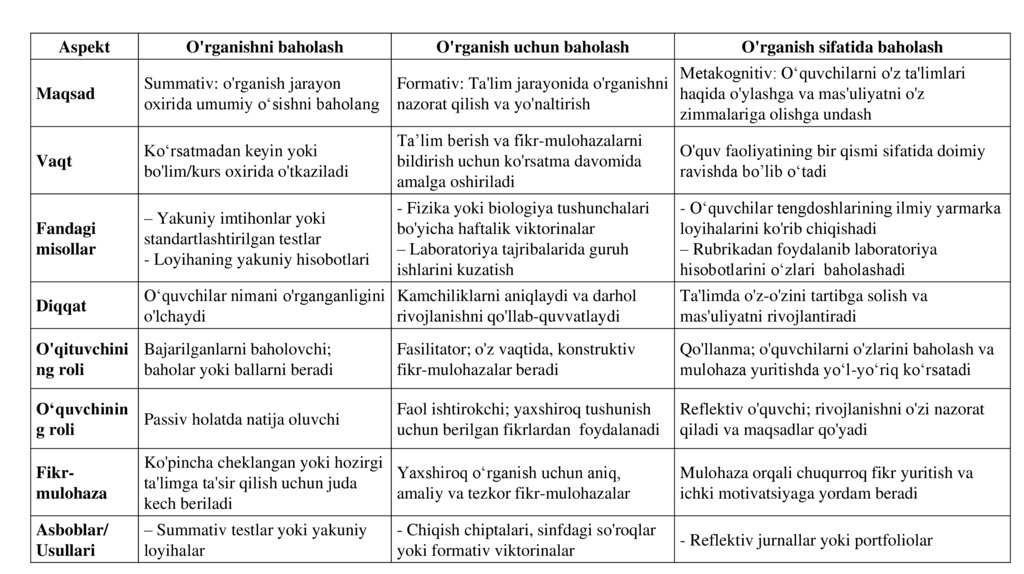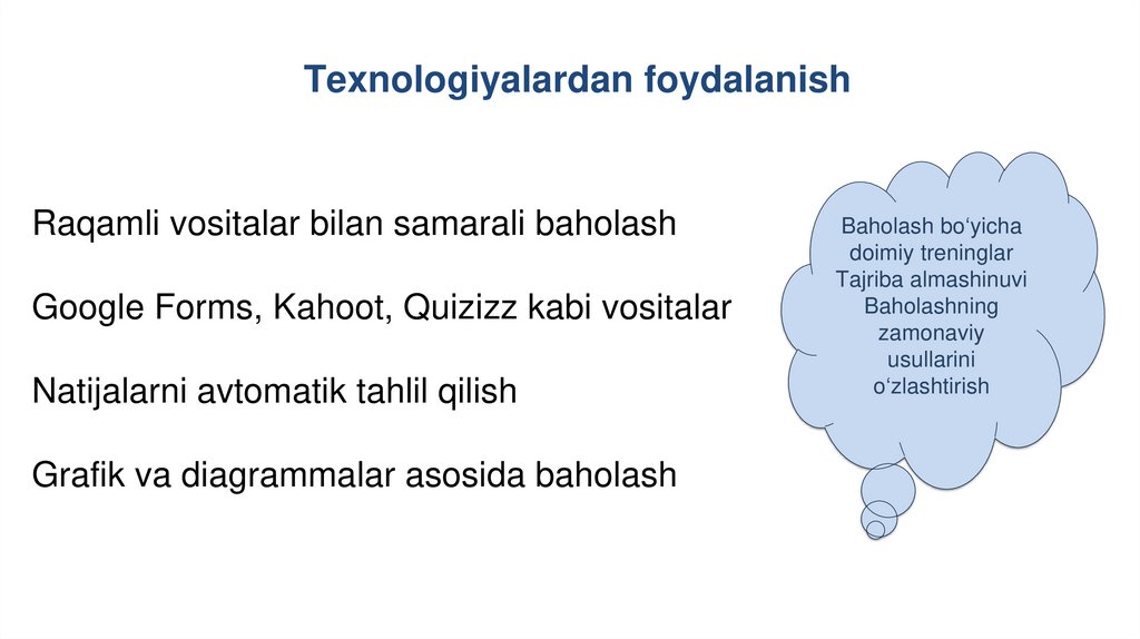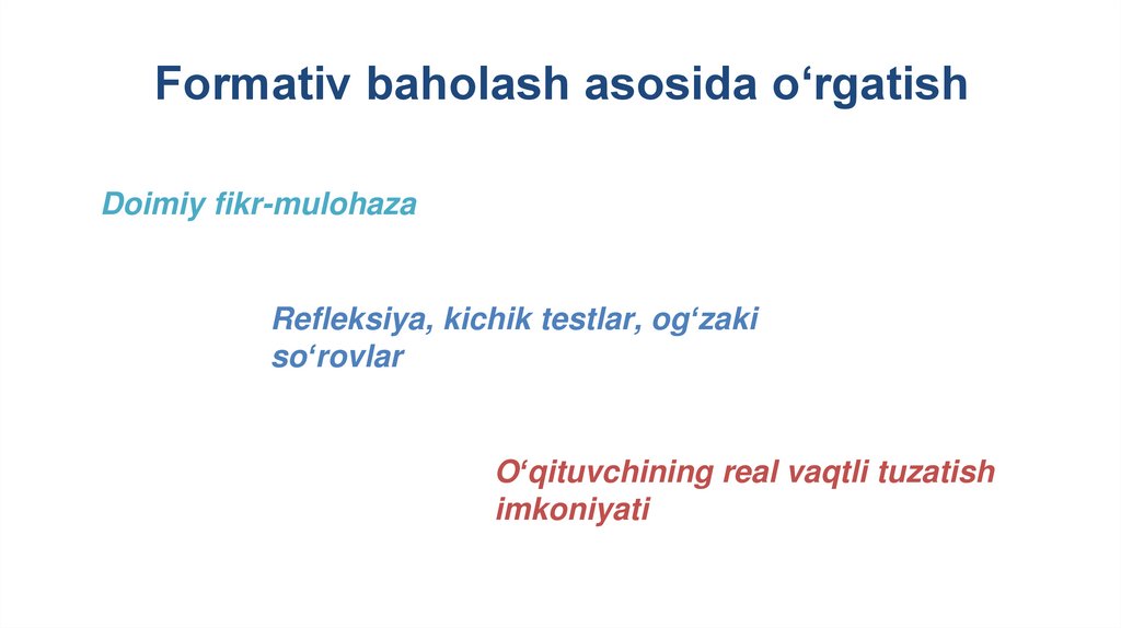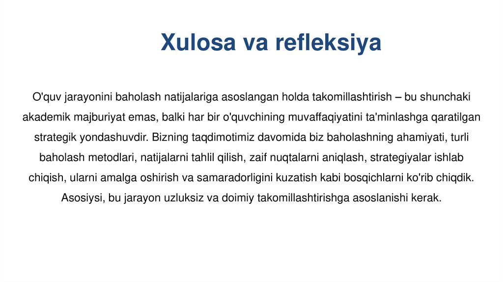 Baholash natijalarigaasoslangan o‘quv jarayonini