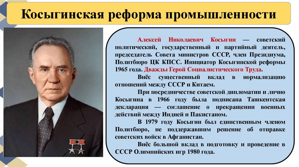 Косыгинская реформа промышленностиАлексей Николаевич Косыгин — советский