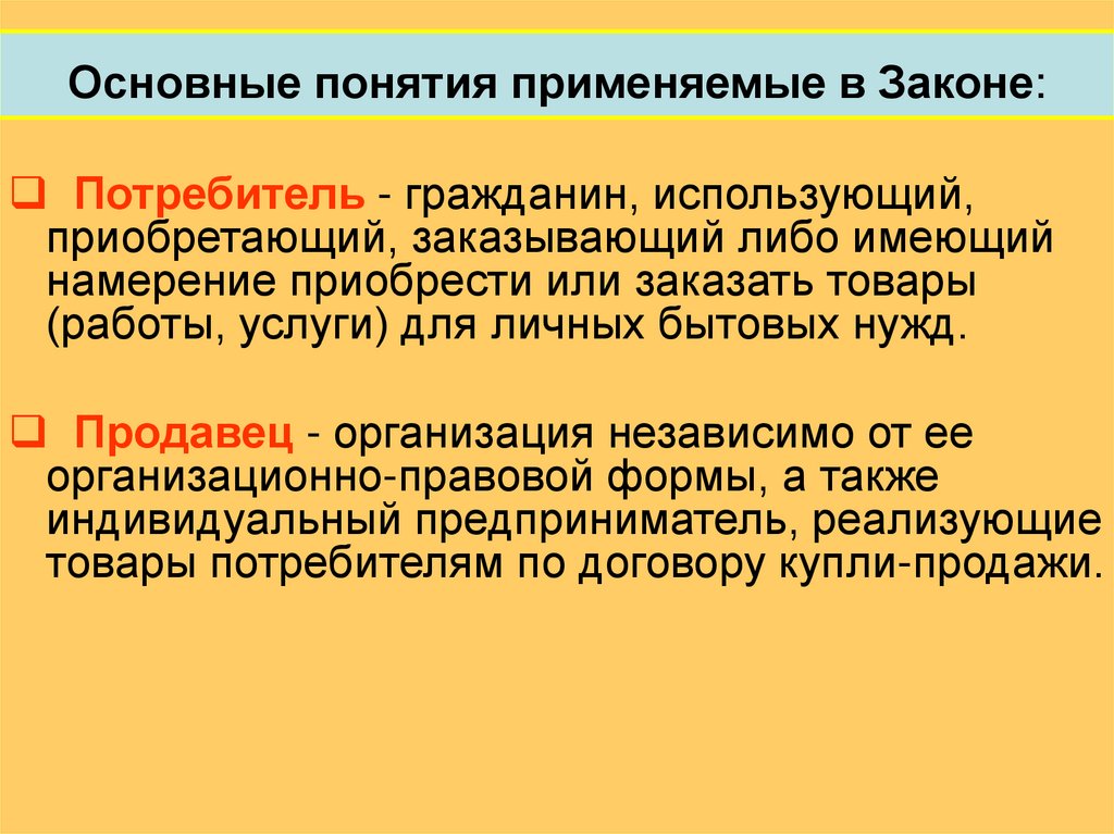 Основные понятия применяемые в Законе:Потребитель - гражданин, использующий,