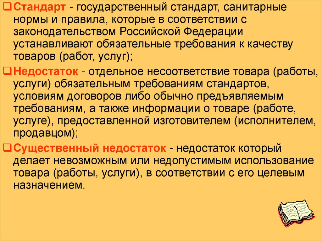Стандарт - государственный стандарт, санитарныенормы и правила, которые в соответствии с