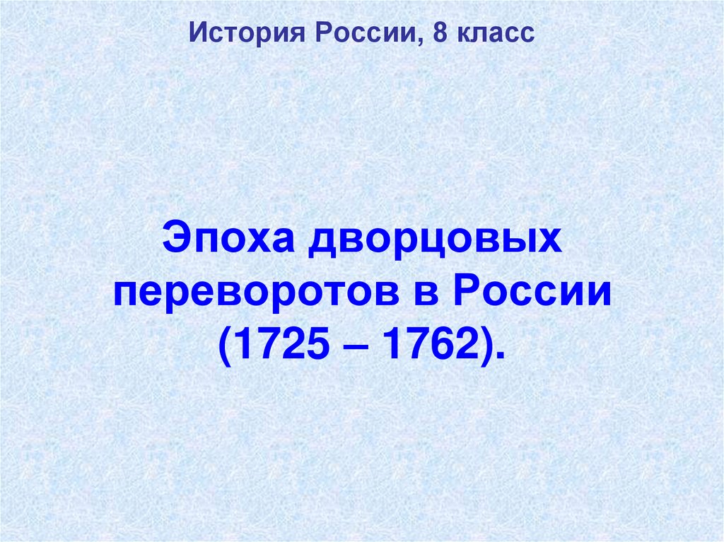 Эпоха дворцовых переворотов (1725 – 1762 гг.) –временной промежуток в политической жизни