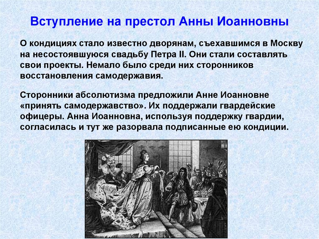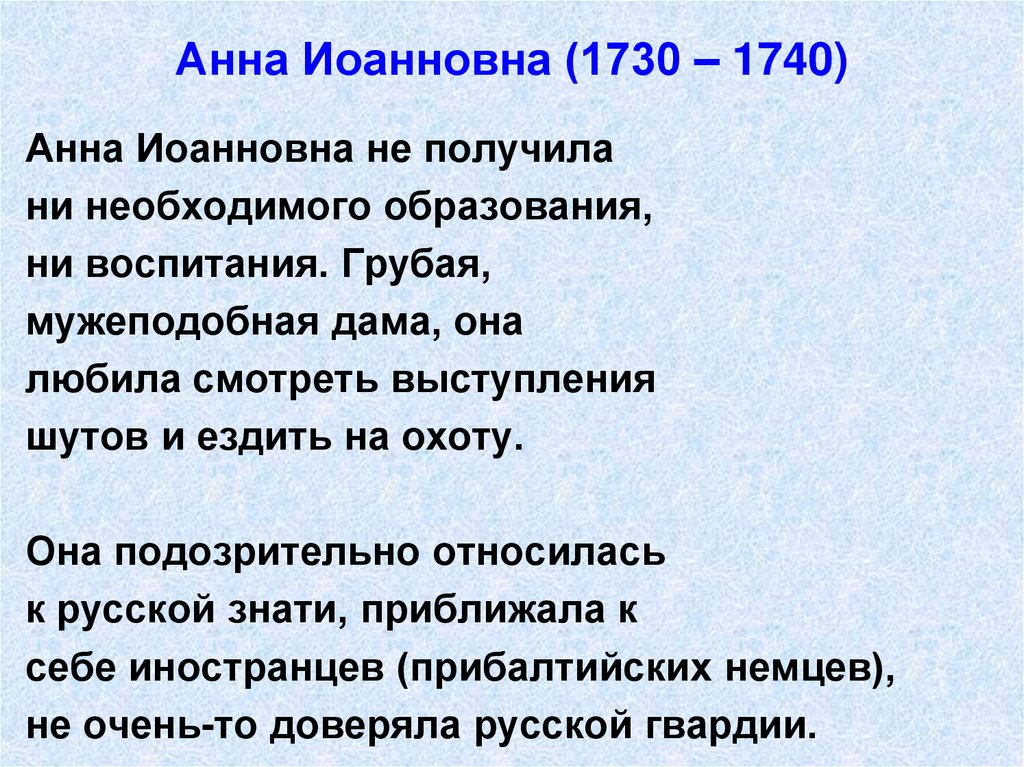 1730 – 1740 гг. – правлениеАнны Иоанновны.