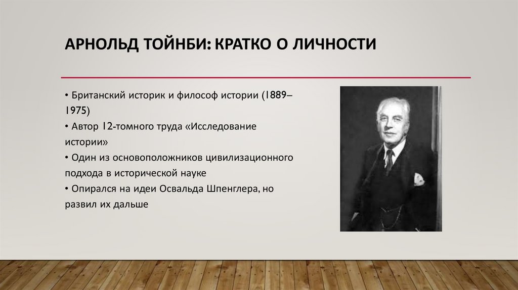 АРНОЛЬД ТОЙНБИ: КРАТКО О ЛИЧНОСТИ• Британский историк и философ истории (1889–