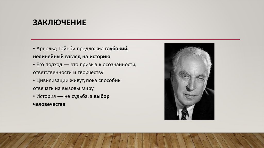 ЗАКЛЮЧЕНИЕ• Арнольд Тойнби предложил глубокий,