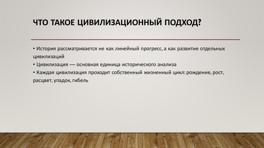 ЧТО ТАКОЕ ЦИВИЛИЗАЦИОННЫЙ ПОДХОД?• История рассматривается не как линейный прогресс, а как развитие отдельных