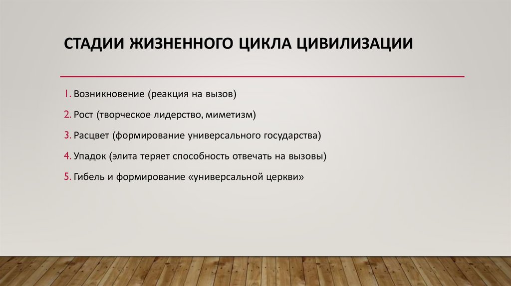 • Каждая цивилизация проходит собственный жизненный цикл: рождение, рост,