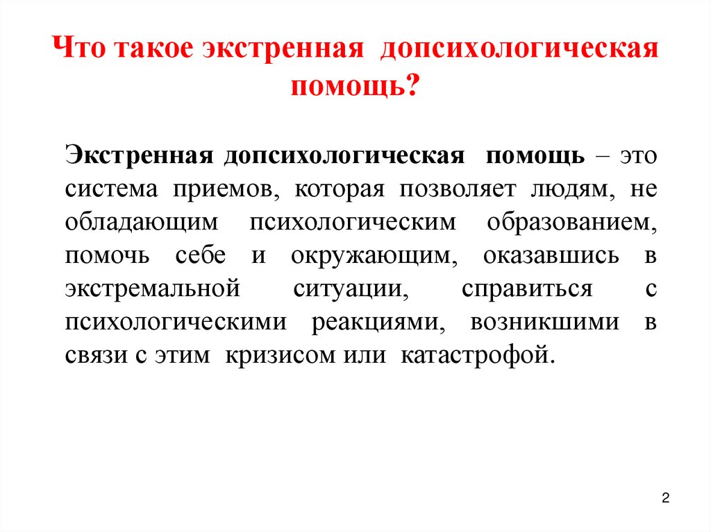 Экстренная допсихологическая помощь – этосистема приемов, которая позволяет людям, не