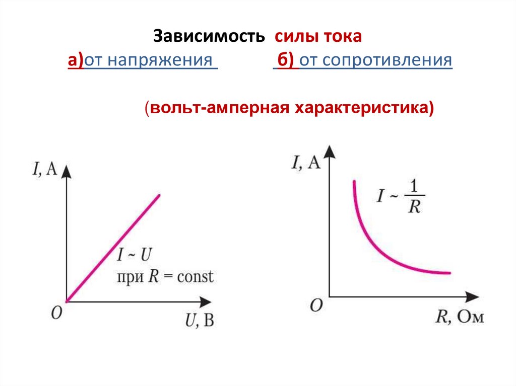16. Зависимость силы тока а)от напряжения б) от сопротивления