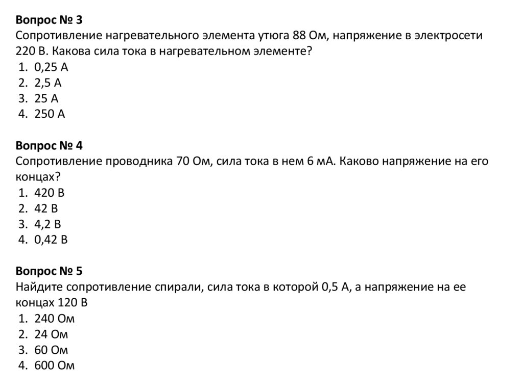 Вопрос № 3Сопротивление нагревательного элемента утюга 88 Ом, напряжение в электросети