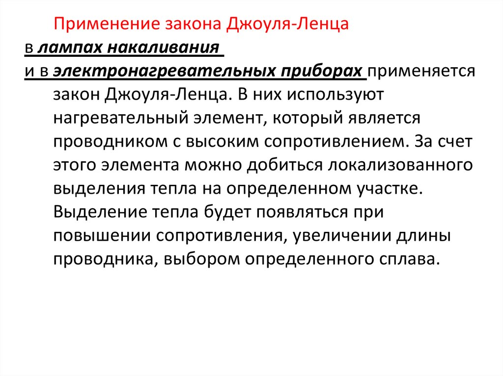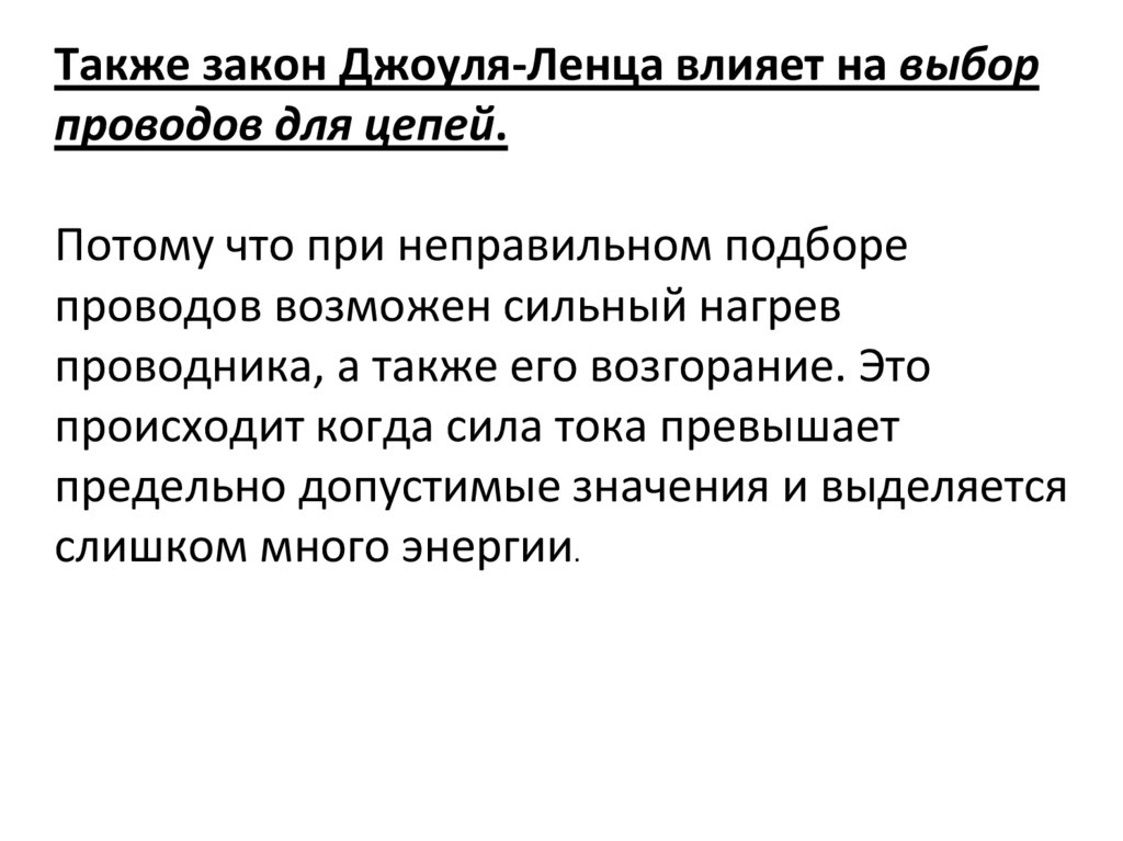 Также закон Джоуля-Ленца влияет на выборпроводов для цепей.
