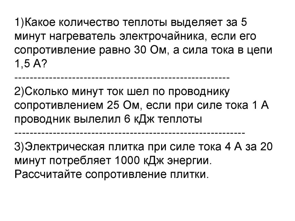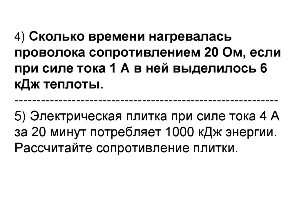 -----------------------------------------------------------5) Электрическая плитка при силе тока 4 А