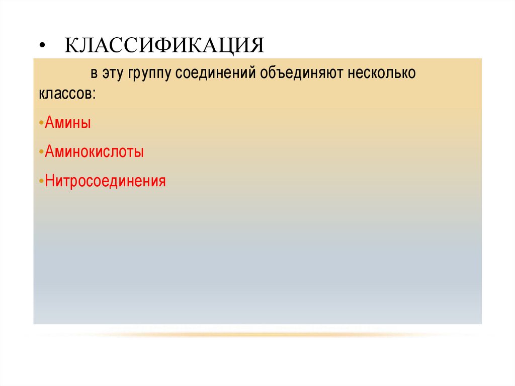 • КЛАССИФИКАЦИЯв эту группу соединений объединяют несколько