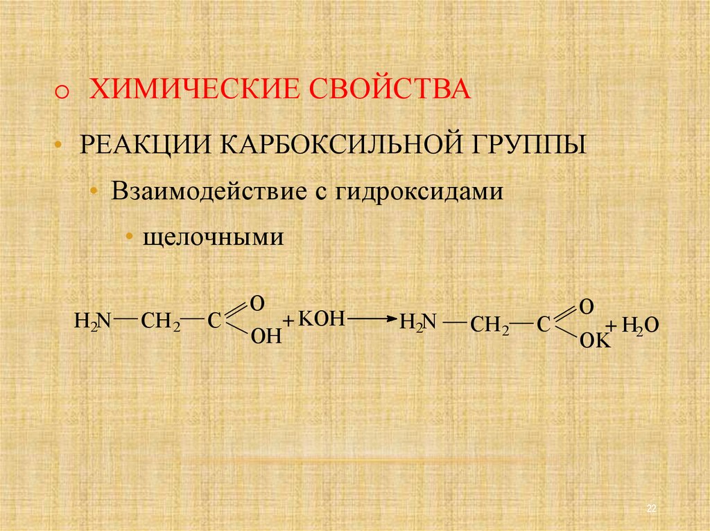 o ХИМИЧЕСКИЕ СВОЙСТВА• РЕАКЦИИ КАРБОКСИЛЬНОЙ ГРУППЫ