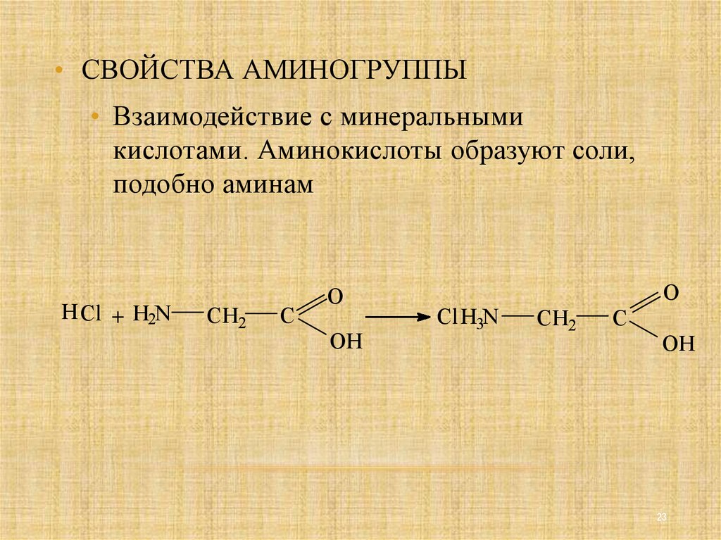 • СВОЙСТВА АМИНОГРУППЫ• Взаимодействие с минеральными