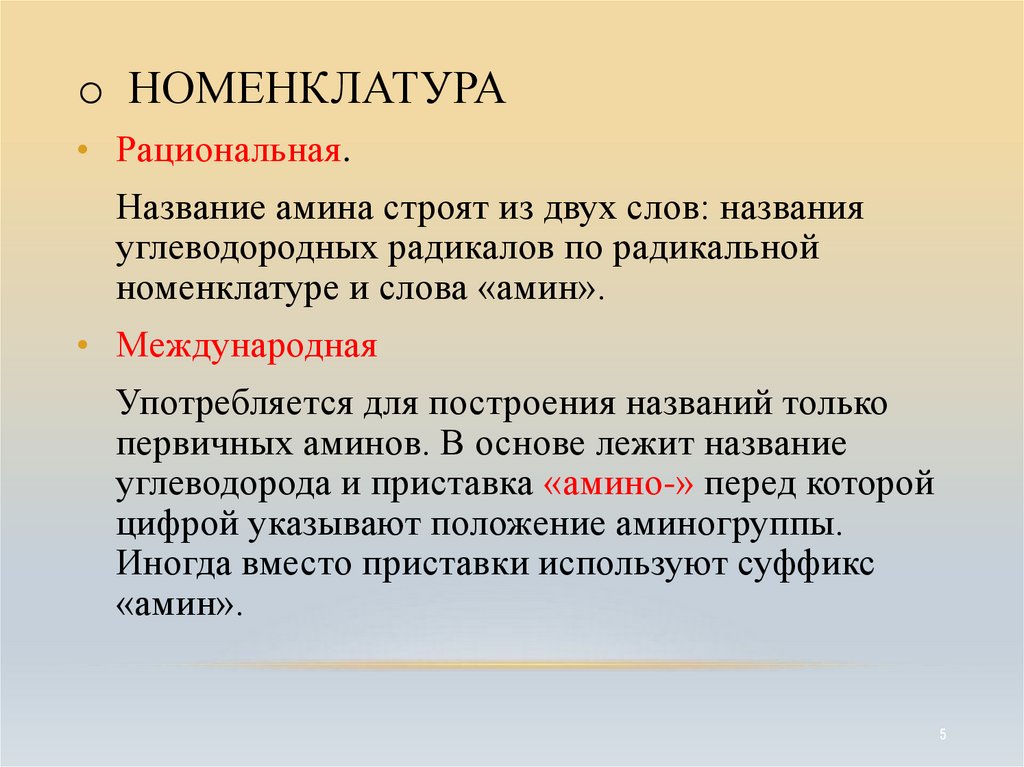 номенклатуре и слова «амин».