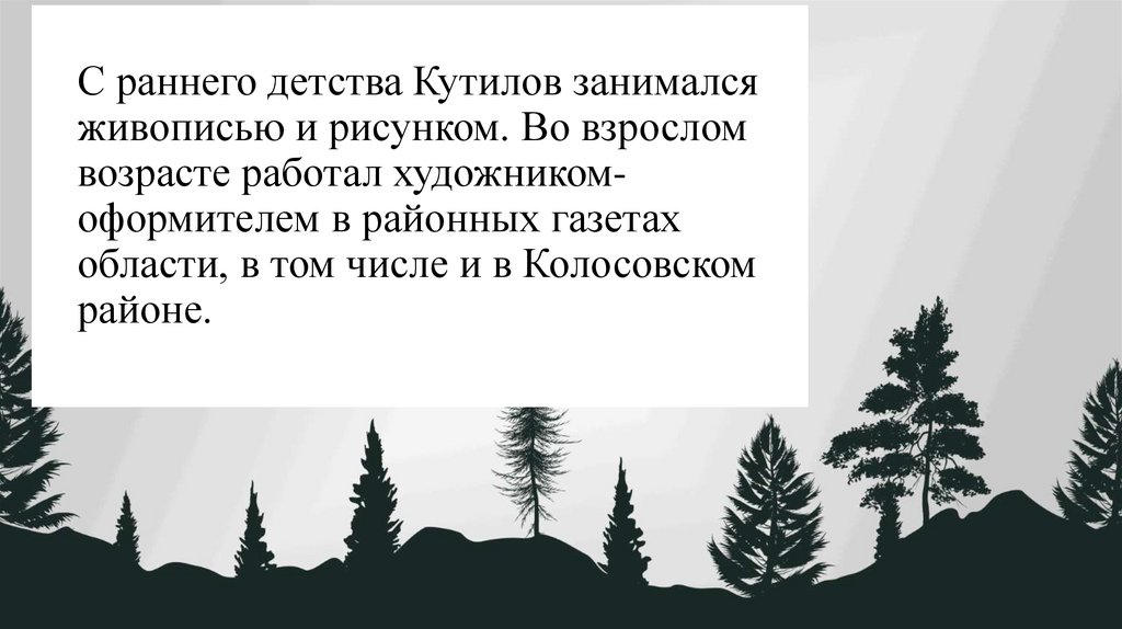 С раннего детства Кутилов занималсяживописью и рисунком. Во взрослом