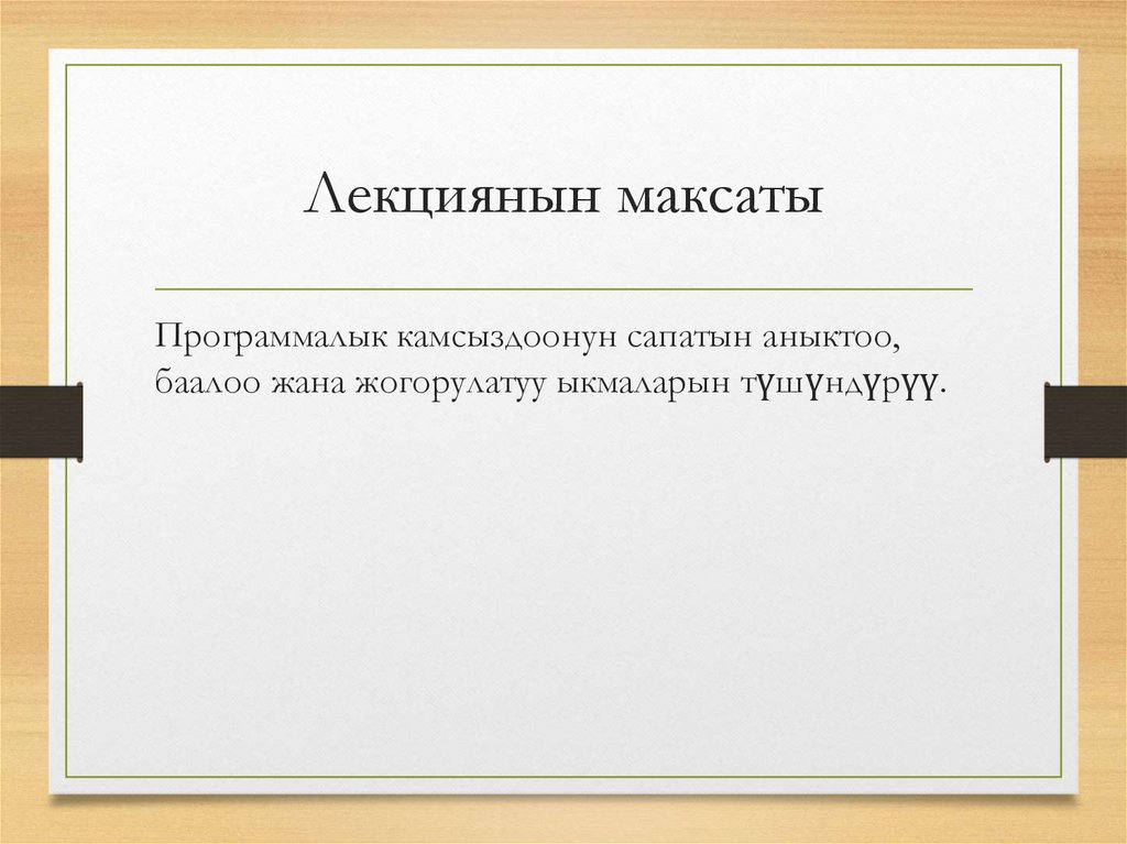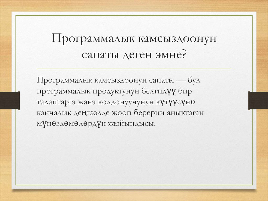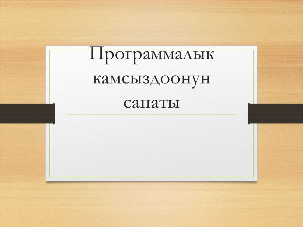 Программалык камсыздоонун сапатын аныктоо,баалоо жана жогорулатуу ыкмаларын түшүндүрүү.