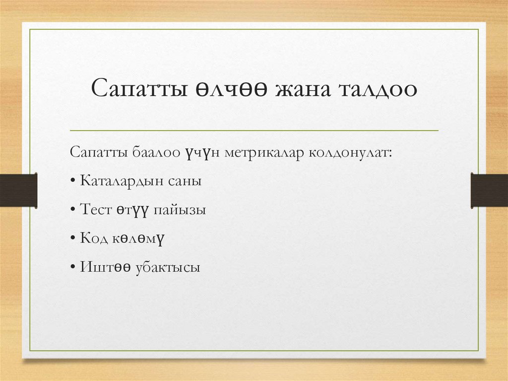 Сапатты баалоо үчүн метрикалар колдонулат:• Каталардын саны
