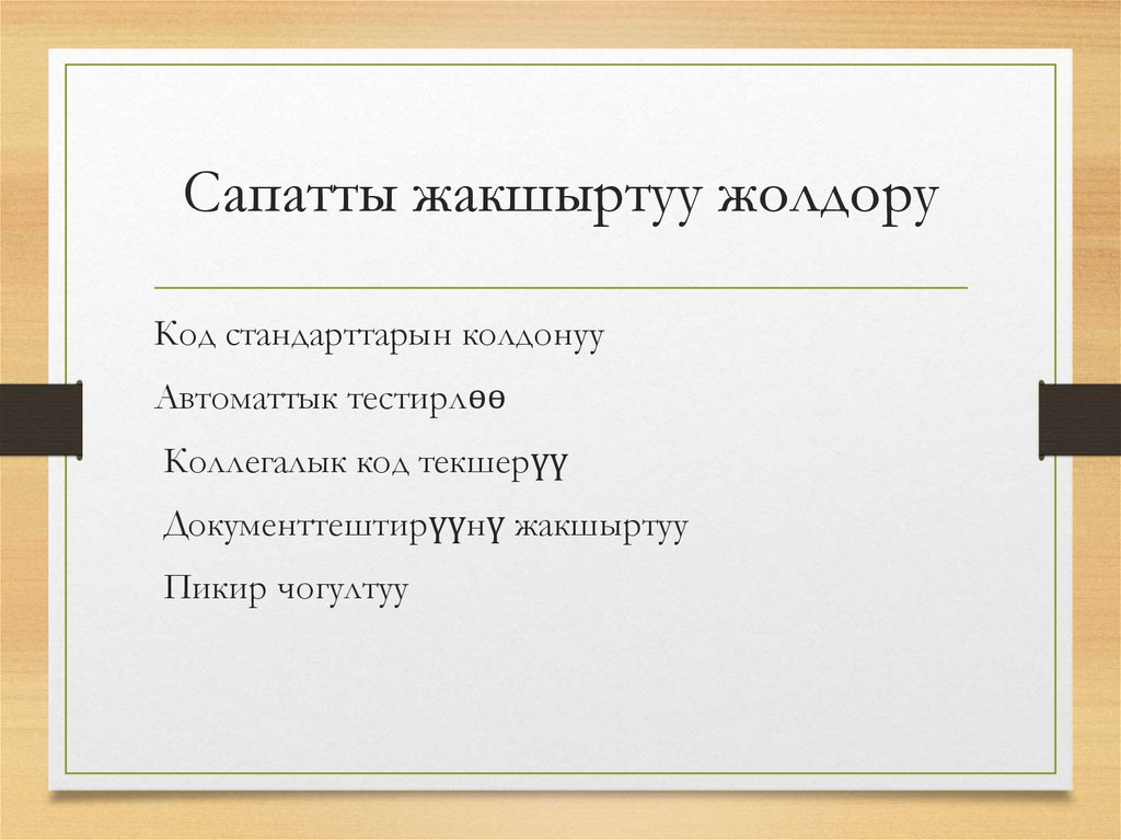 Код стандарттарын колдонууАвтоматтык тестирлөө