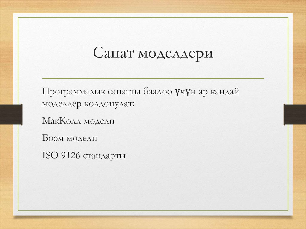 Программалык сапатты баалоо үчүн ар кандаймоделдер колдонулат: