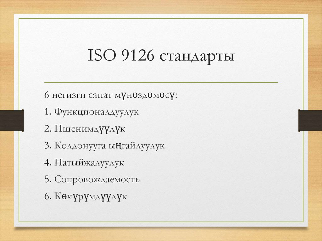3. ISO 9126 стандарты эмнелерди камтыйт?