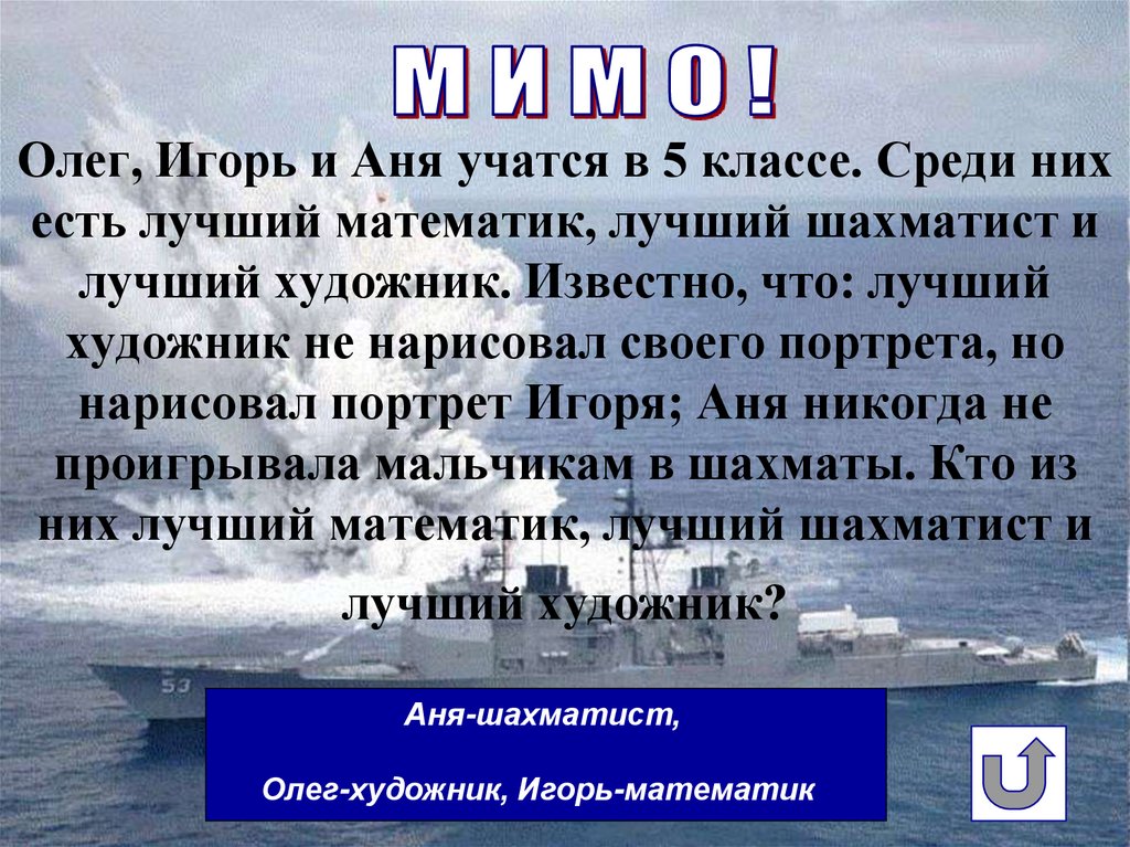 370. Олег, Игорь и Аня учатся в 5 классе. Среди них есть лучший математик, лучший шахматист и лучший художник. Известно, что: лучший