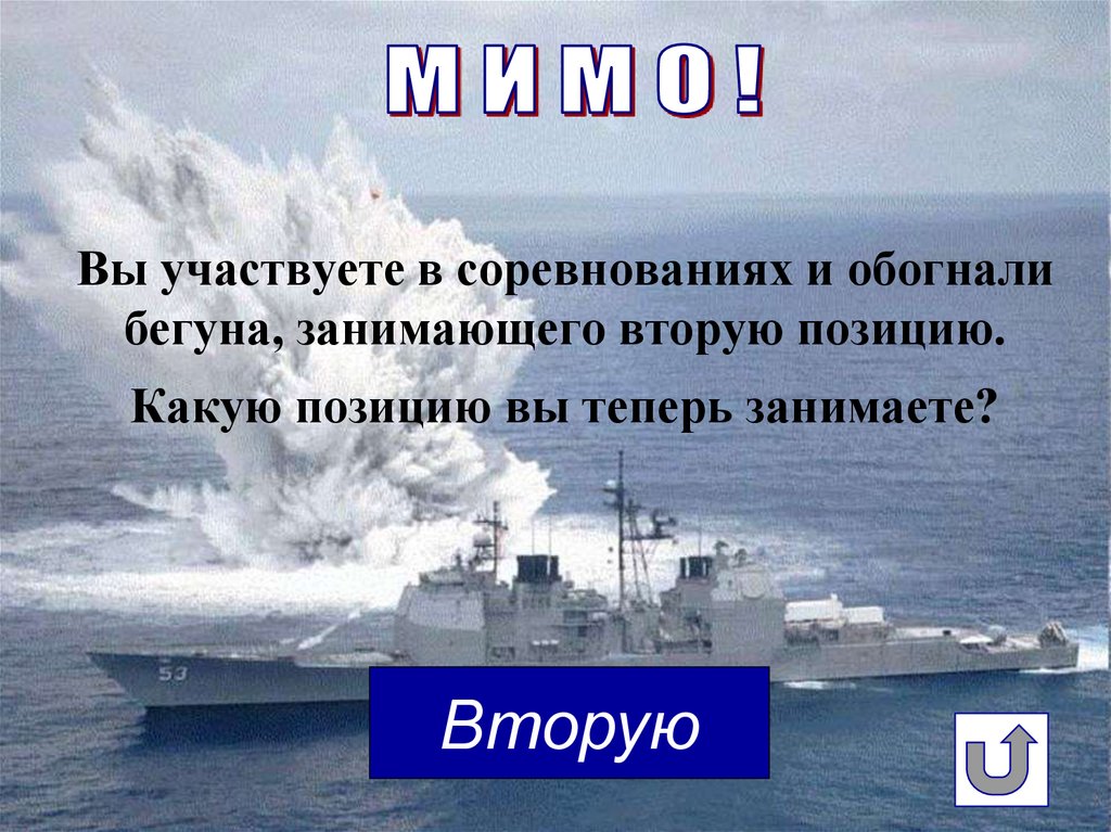 Отрезок77. Вы участвуете в соревнованиях и обогнали бегуна, занимающего вторую позицию. Какую позицию вы теперь занимаете?