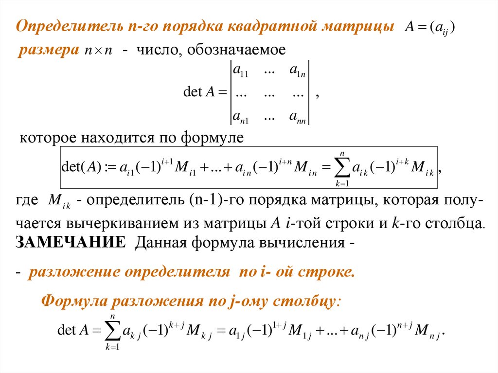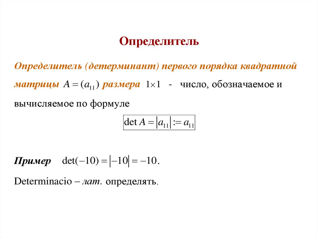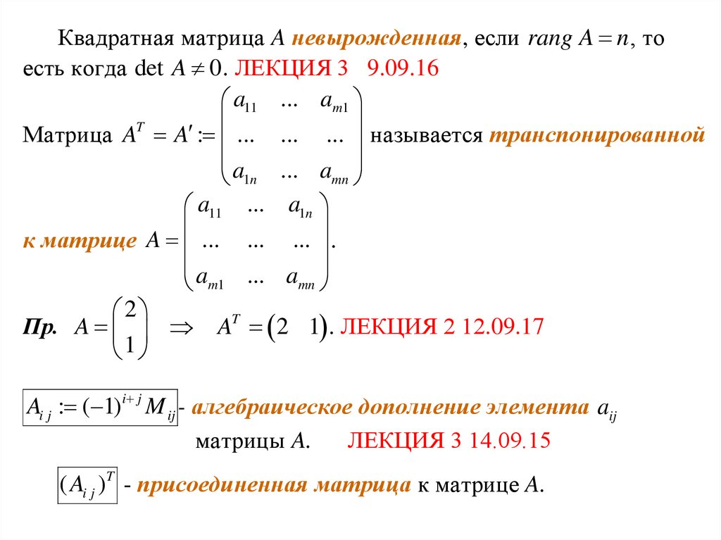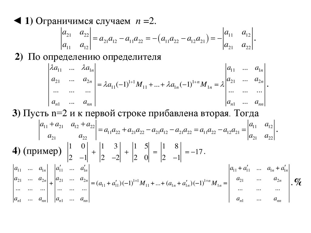 произведения матрицы на число и произведения матриц. Пр. 6.* Опр. определителя,