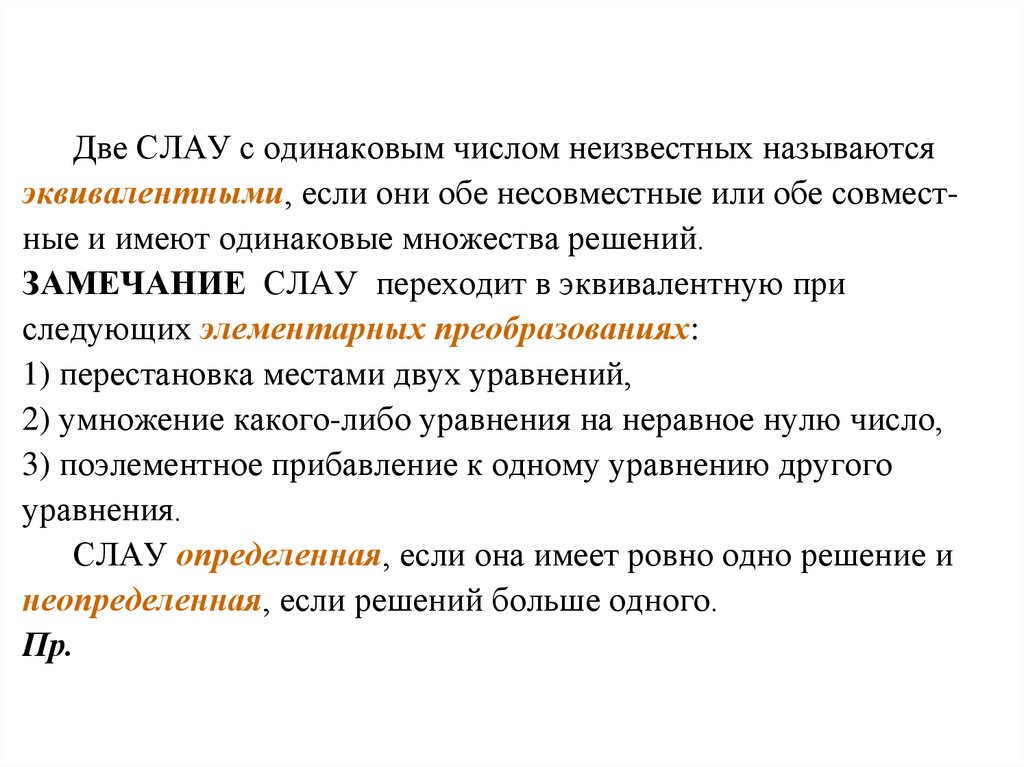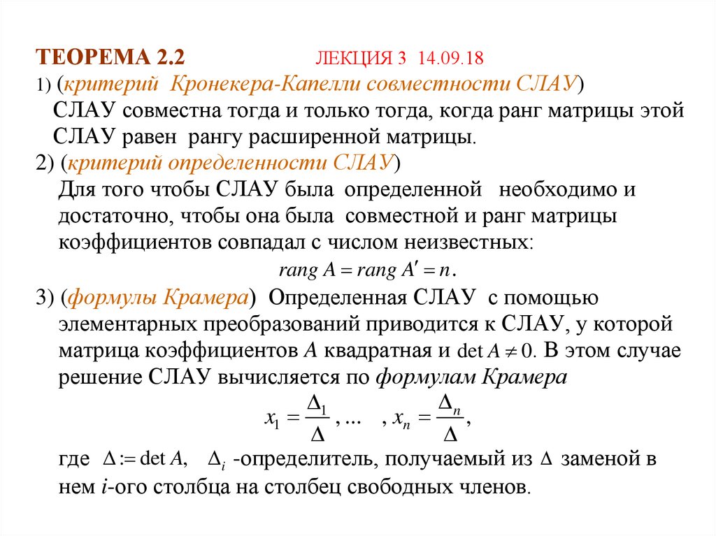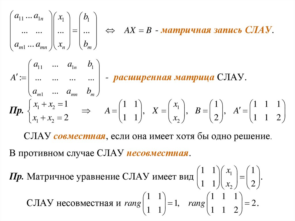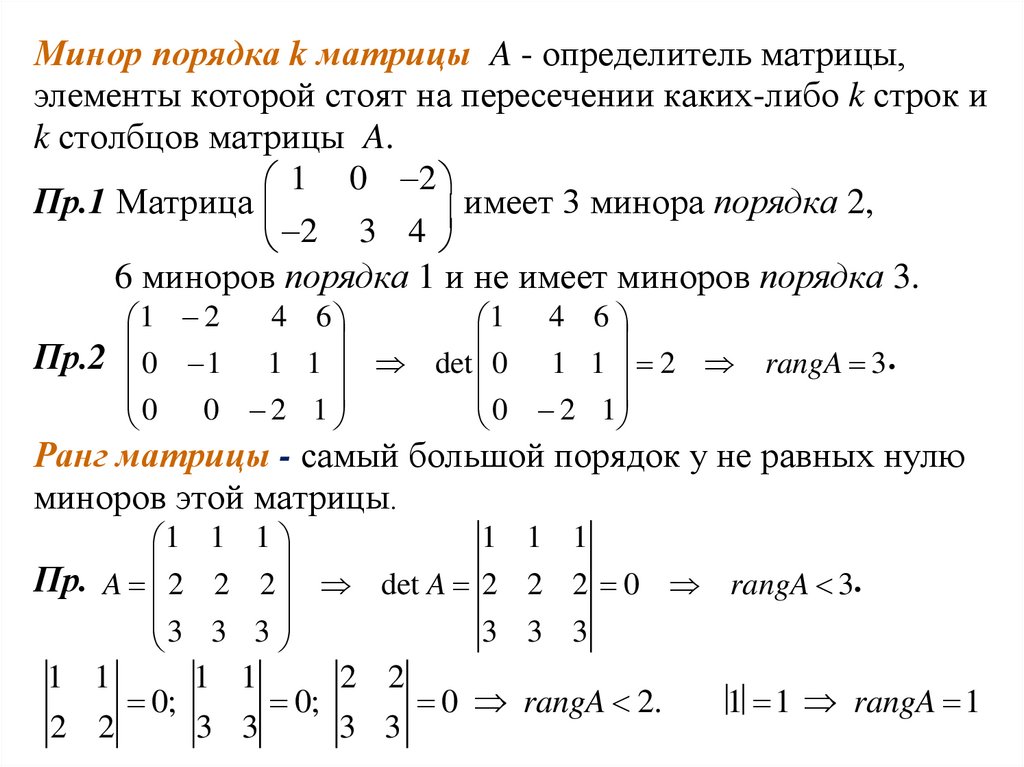 минора и ранга матрицы. Пр. 7.*Опр. СЛАУ, совместной и определенной СЛАУ. Пр.