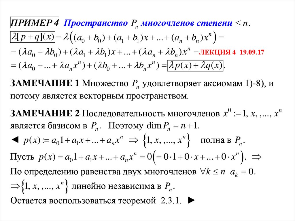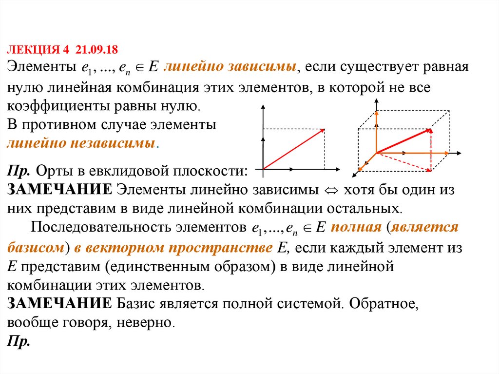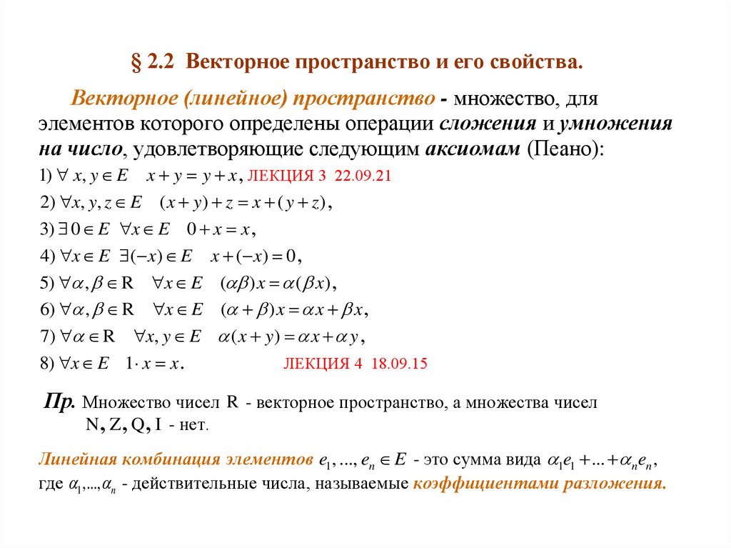 множеств и векторных пространств. Пр. 10. Опр. линейной комбинации элементов и