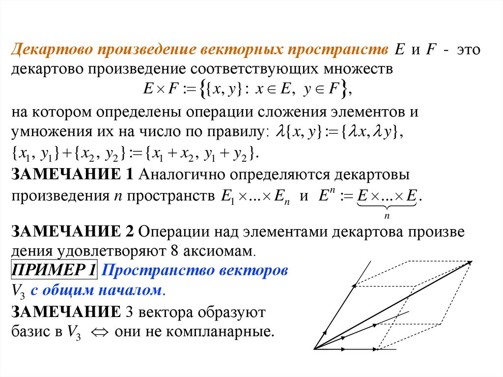 8.* Опр. векторного пространства (ВП). Пр. 9. Опр. декартова произведения