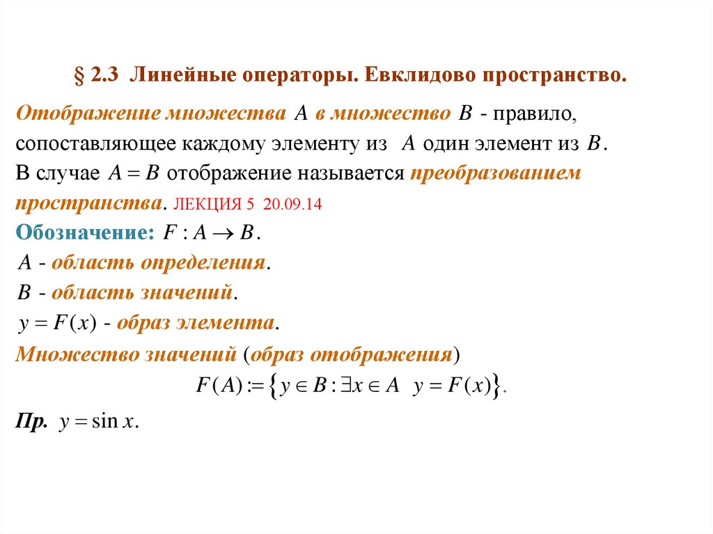 отображения множеств, линейного и полилинейного отображений ВП. Пр. 13.* Опр.