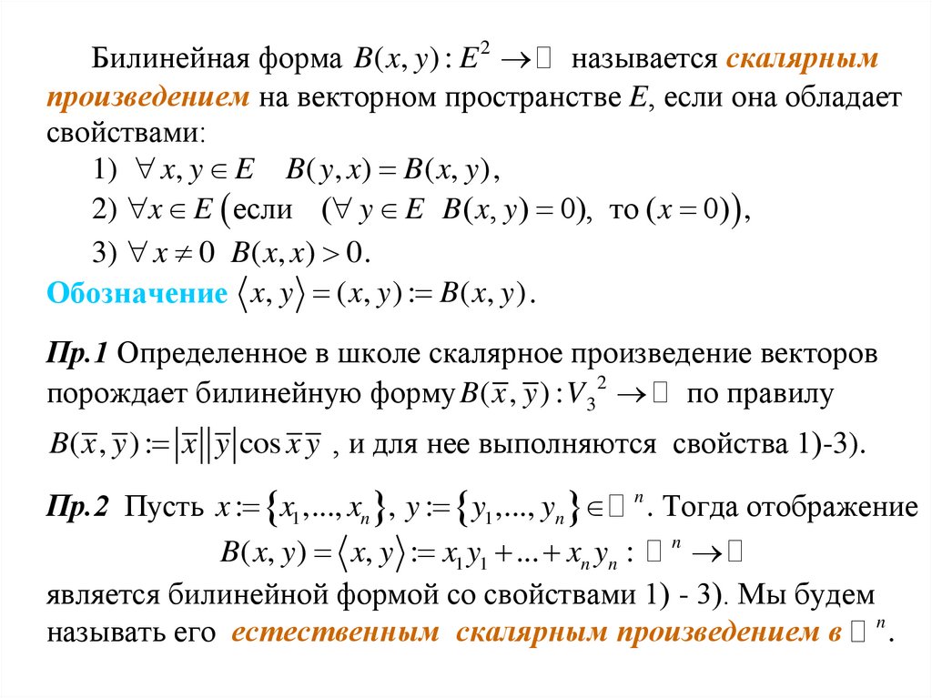 базиса в ВП. Пр. 11.* Опр. скалярного произведения и нормы в ВП. Пр. 12.* Опр.