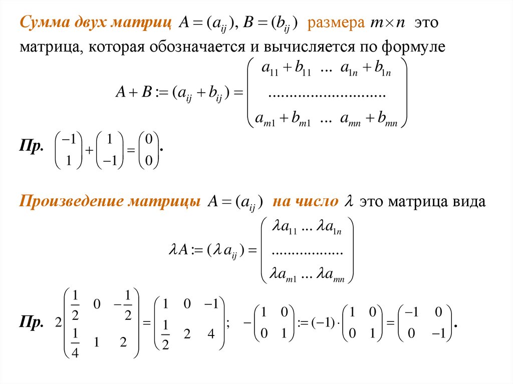 Сумма двух матриц A (aij ), B (bij ) размера m n этоматрица, которая обозначается и вычисляется по формуле