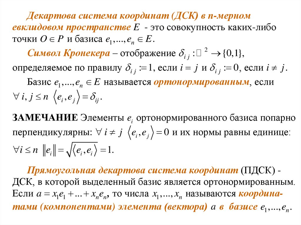 14.* Опр. ДСК и полярной системы координат. Пр. 15. Опр. ортонормированного