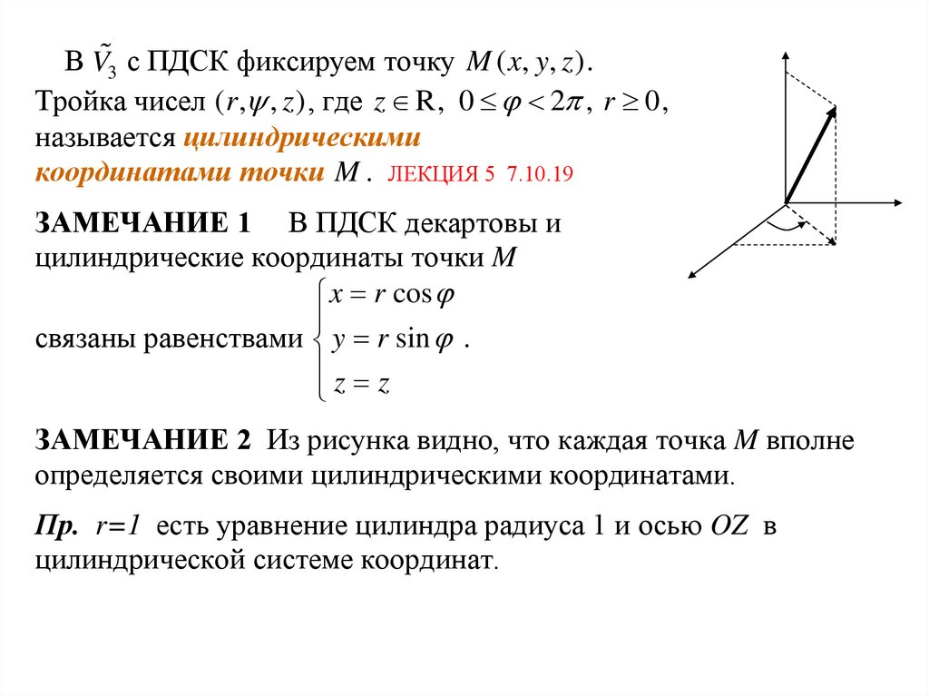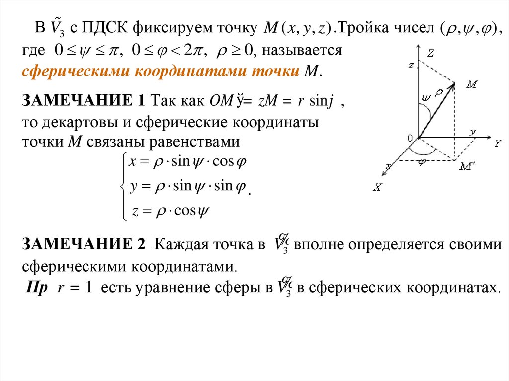 координат точки. 17. Опр. сферической и цилиндрической систем координат. Связь с