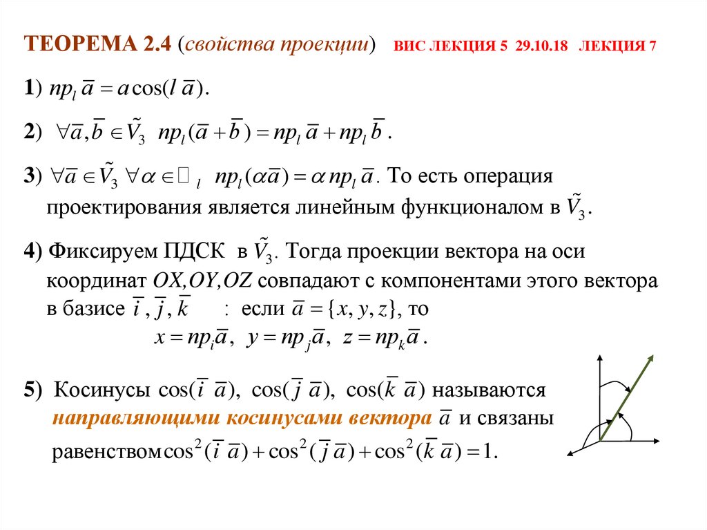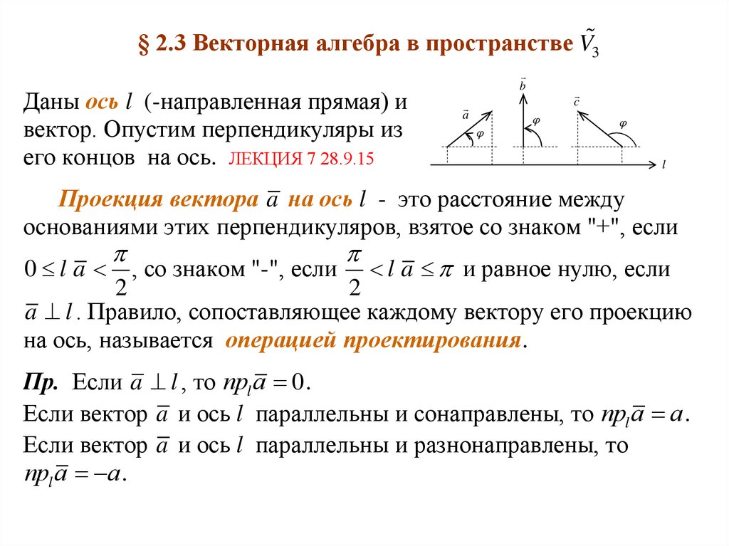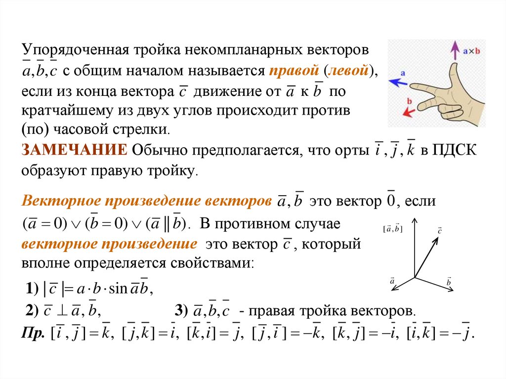 18. Опр. проекции вектора на ось и ее свойства. 19.* Опр. правой тройки и вектор