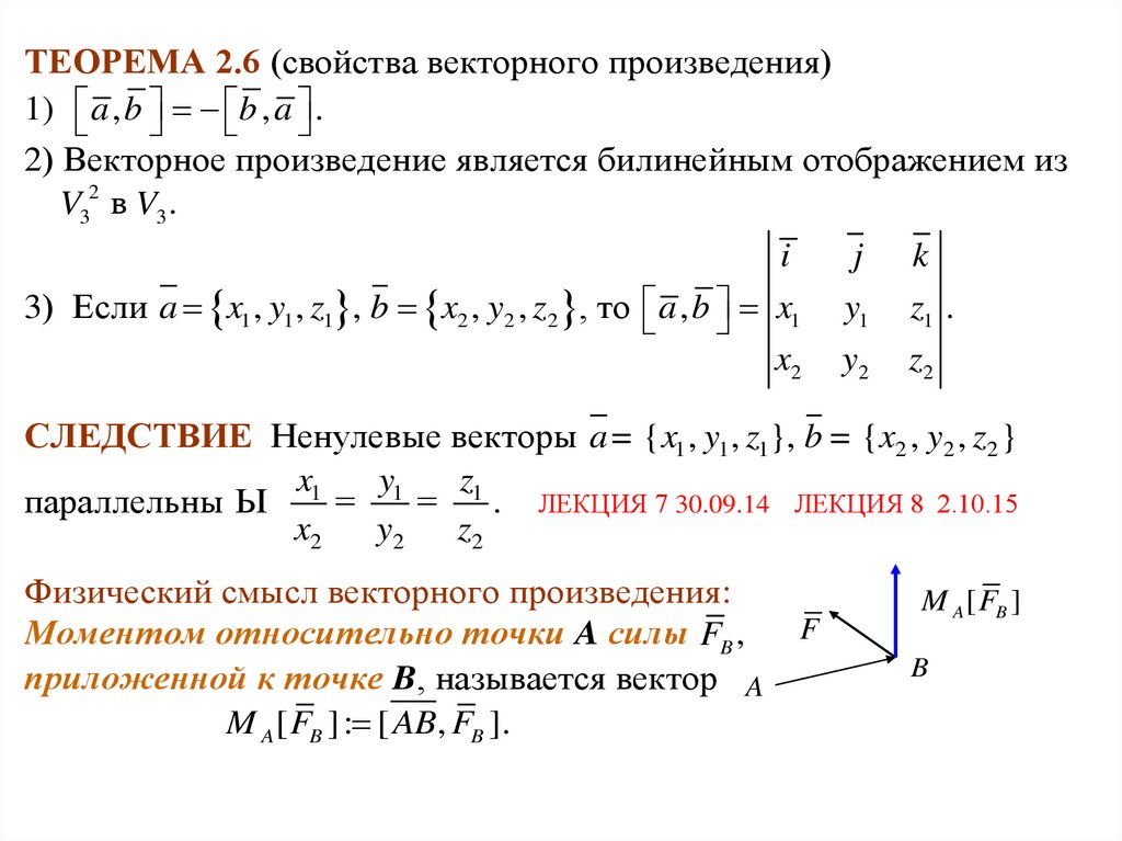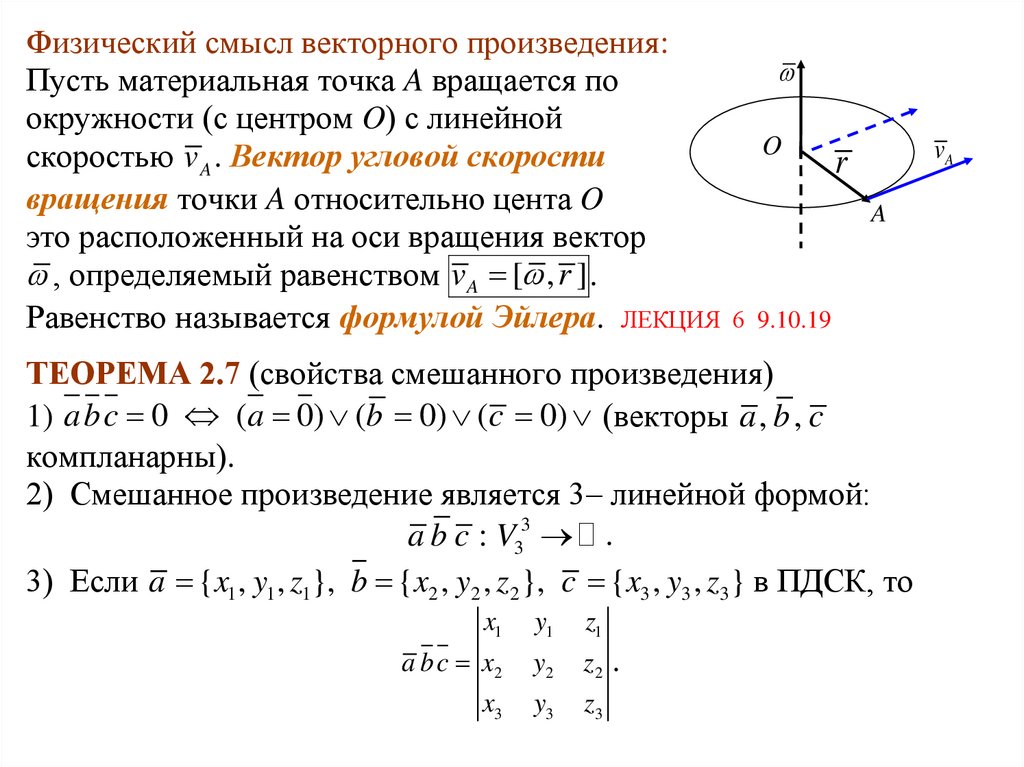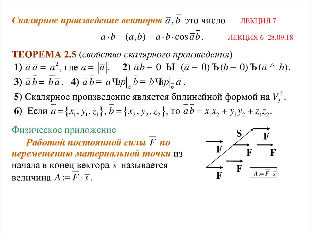 ного произведения. 20. Физические смыслы скалярного, векторного произведений.