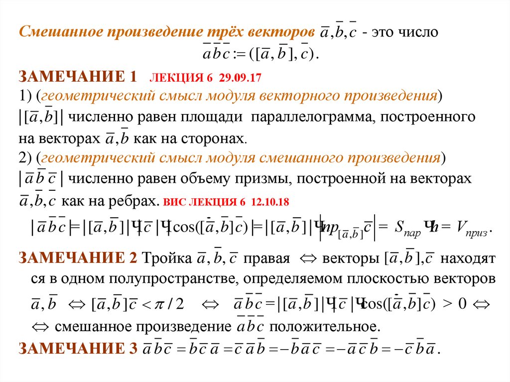 21. Опр. смешанного произведения и геом. смыслы модулей векторного и смешан