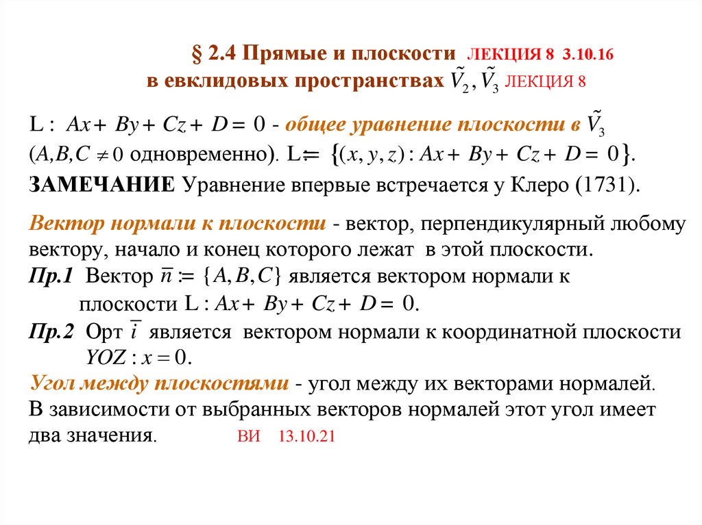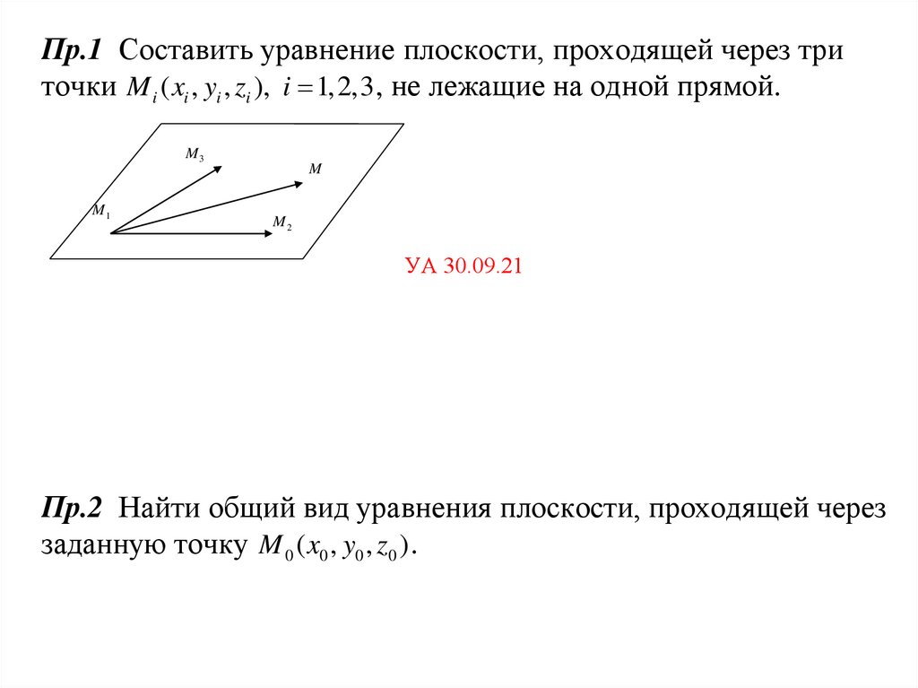 ного произведений. 22.* Опр. плоскости и два аналитических способа ее задания.