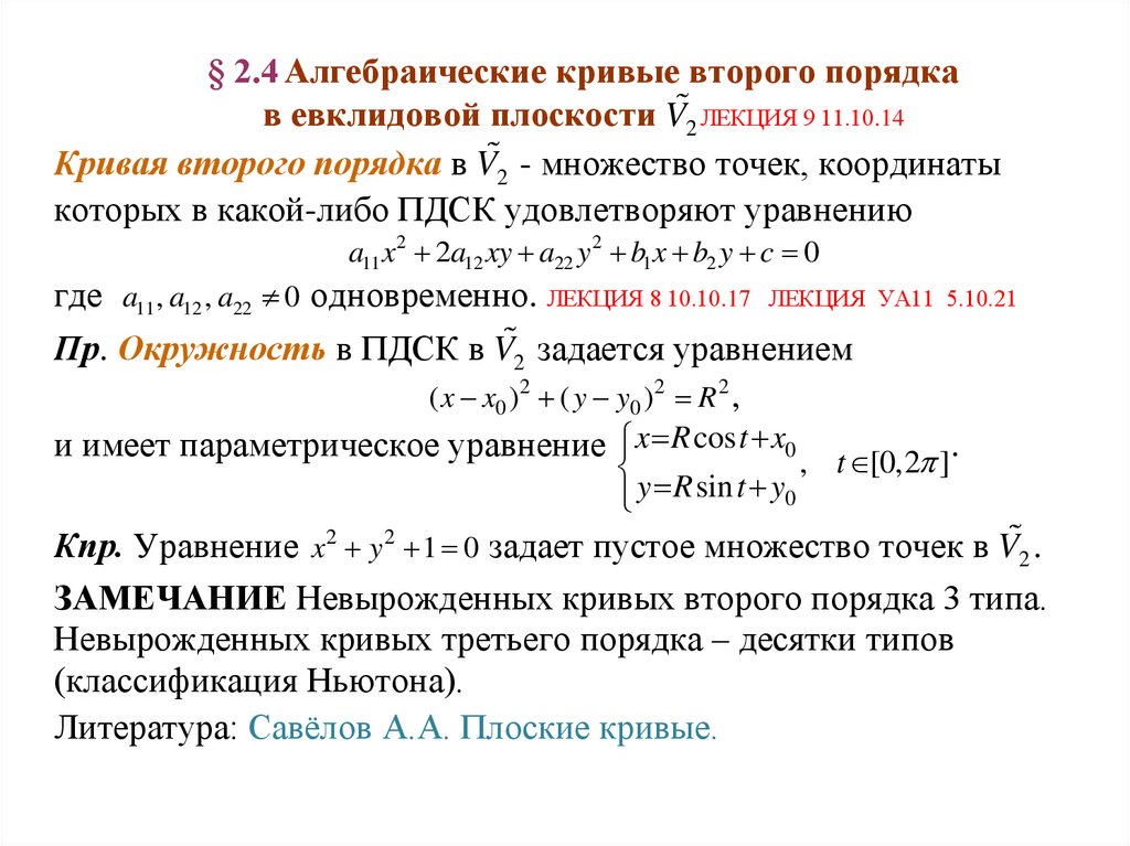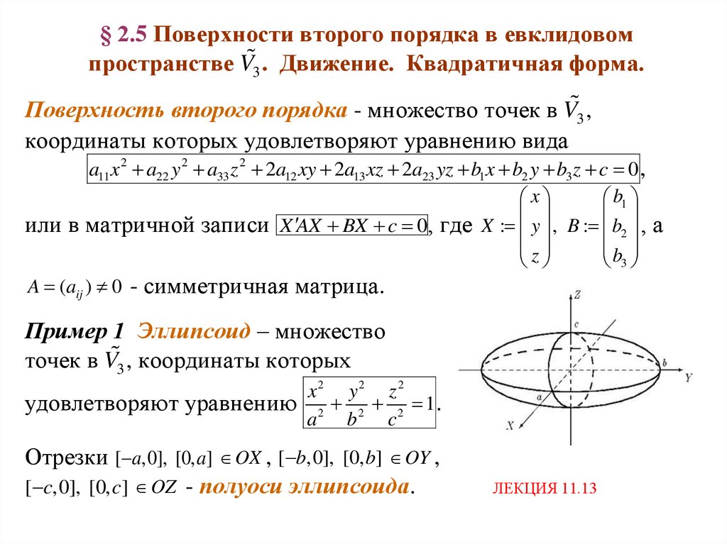 § 2.5 Поверхности второго порядка в евклидовомпространстве V3 . Движение. Квадратичная форма.