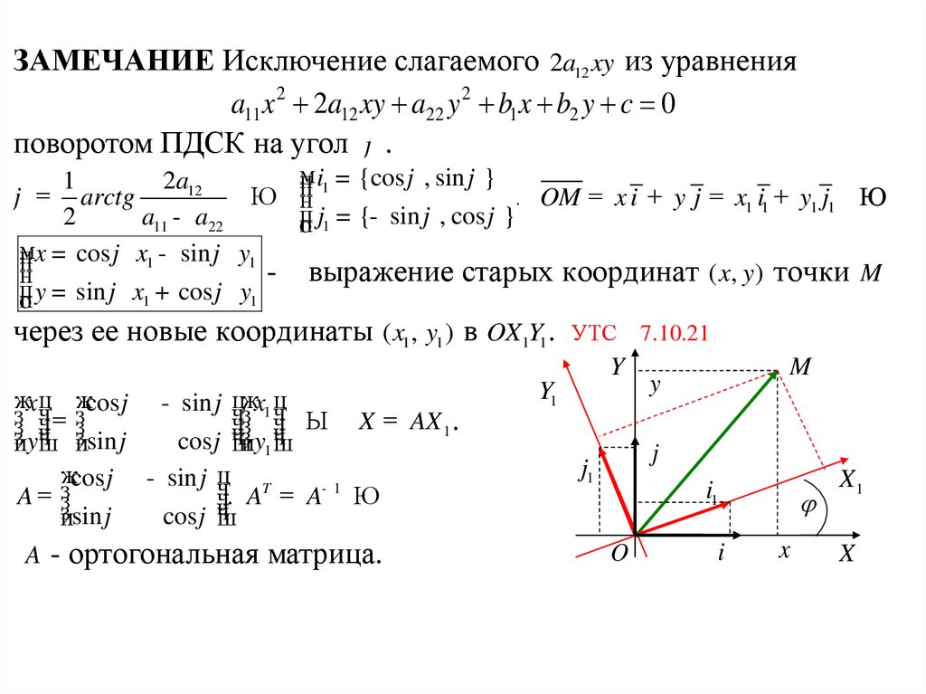 через ее новые координаты ( x1 , y1 ) в OX1Y1 . УТС